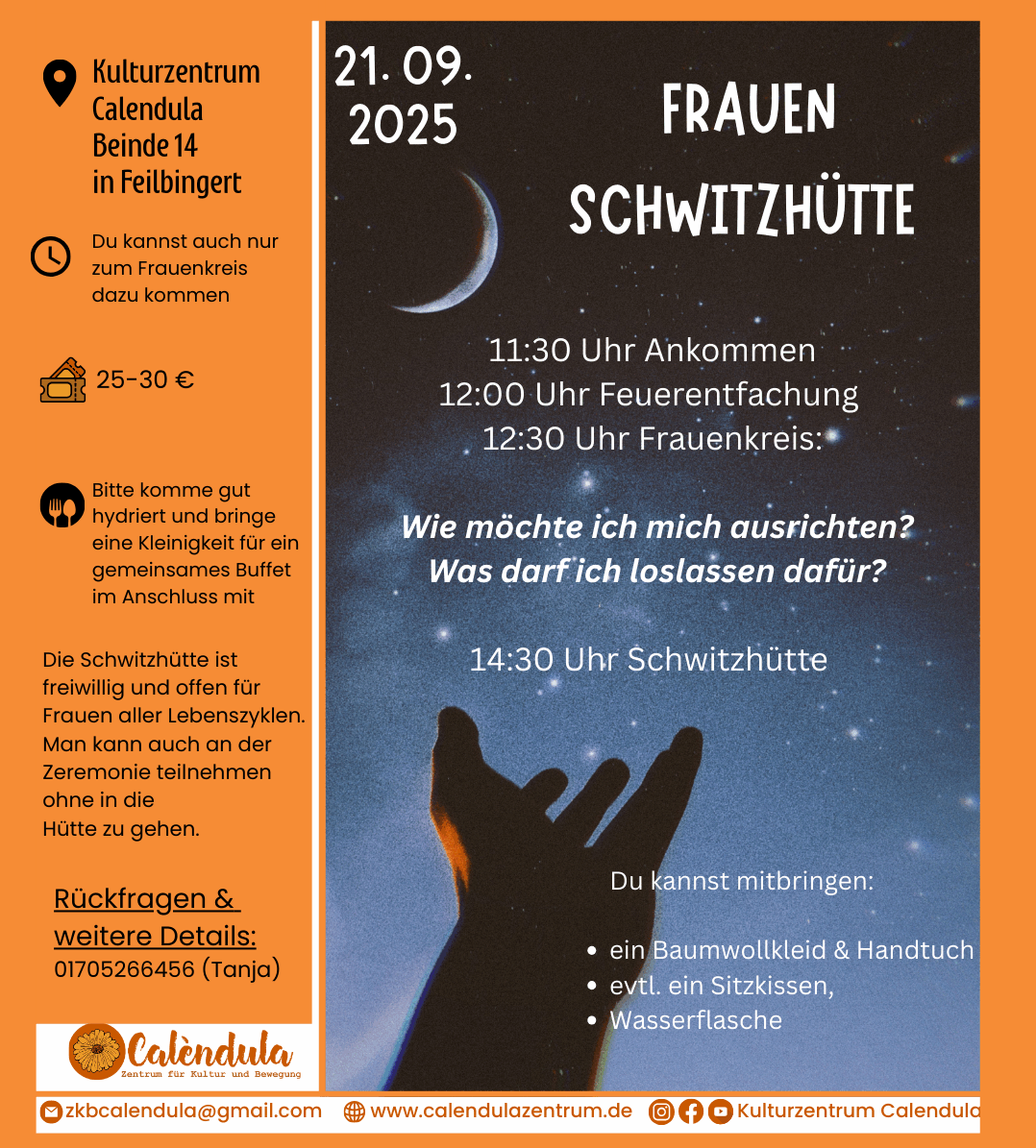 Mit der Schwitzhütte & dem Austausch freuen wir uns auf eine gemeinsame Zeit, die nährt, klärt & stärkt.