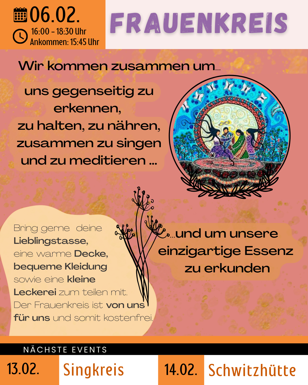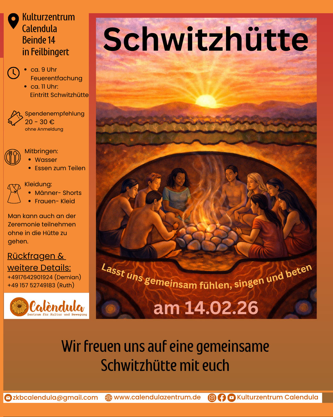 Mit der Schwitzhütte & dem Austausch freuen wir uns auf eine gemeinsame Zeit, die nährt, klärt & stärkt.